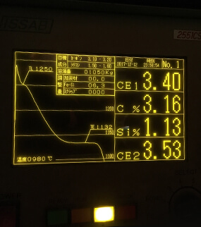 Menurut model matematika yang telah dikonfirmasi sebelumnya untuk menghitung ekuivalen karbon logam panas (CE), kandungan karbon (C %), kadar silikon(Si %), dan indikator lain dari analisis cepat tungku besi tuang sebelumnya, besi cor abu-abu dan bahan paduan besi elastis tergantung pada perbandingan karbon dan silikon, sesuai dengan komposisi logam panas yang harus disesuaikan.